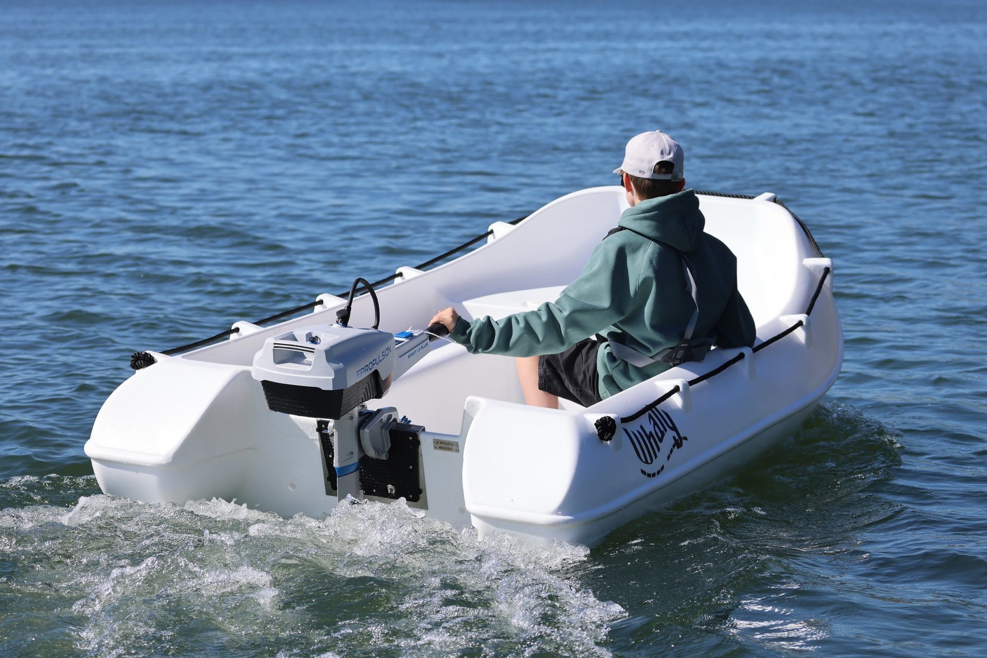 This 2025 Whaly 270 is an electric Tender Boat from Whaly, powered by a 1,000 W ePropulsion motor and a 1,276 Wh battery pack, offering a quiet and eco-friendly boating experience.